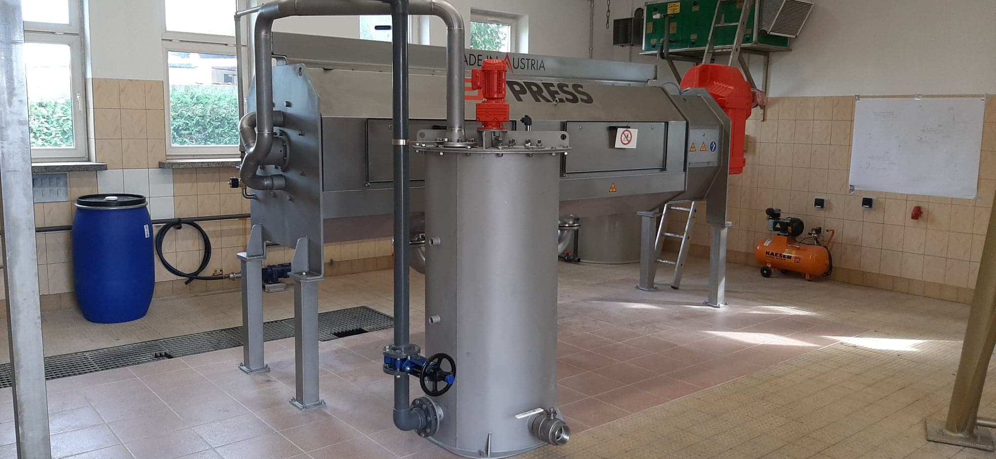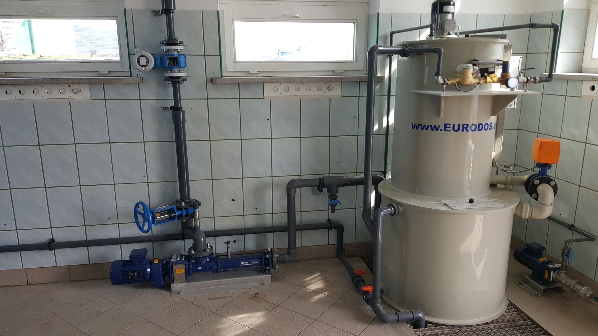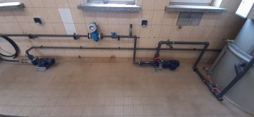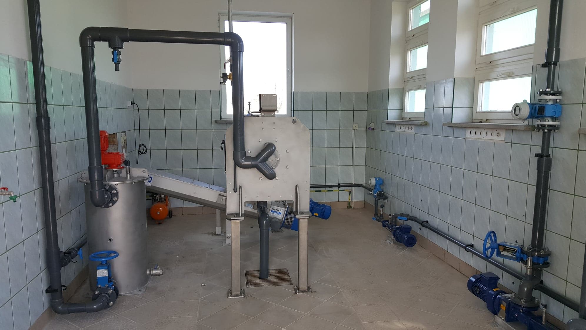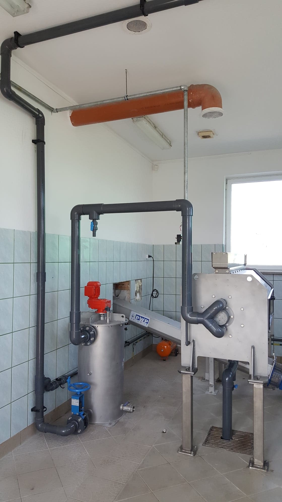Przykładowy montaż urządzeń linii do odwadniania osadów ściekowych z prasą ślimakową IEA wraz z wykonaniem wszystkich rurociągów technologicznych z tworzywa pvc-u
